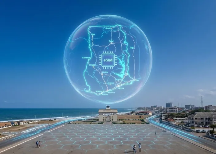 घाना eSIM: अकरा, कुमासी और केप कोस्ट के लिए भरोसेमंद 4G/LTE