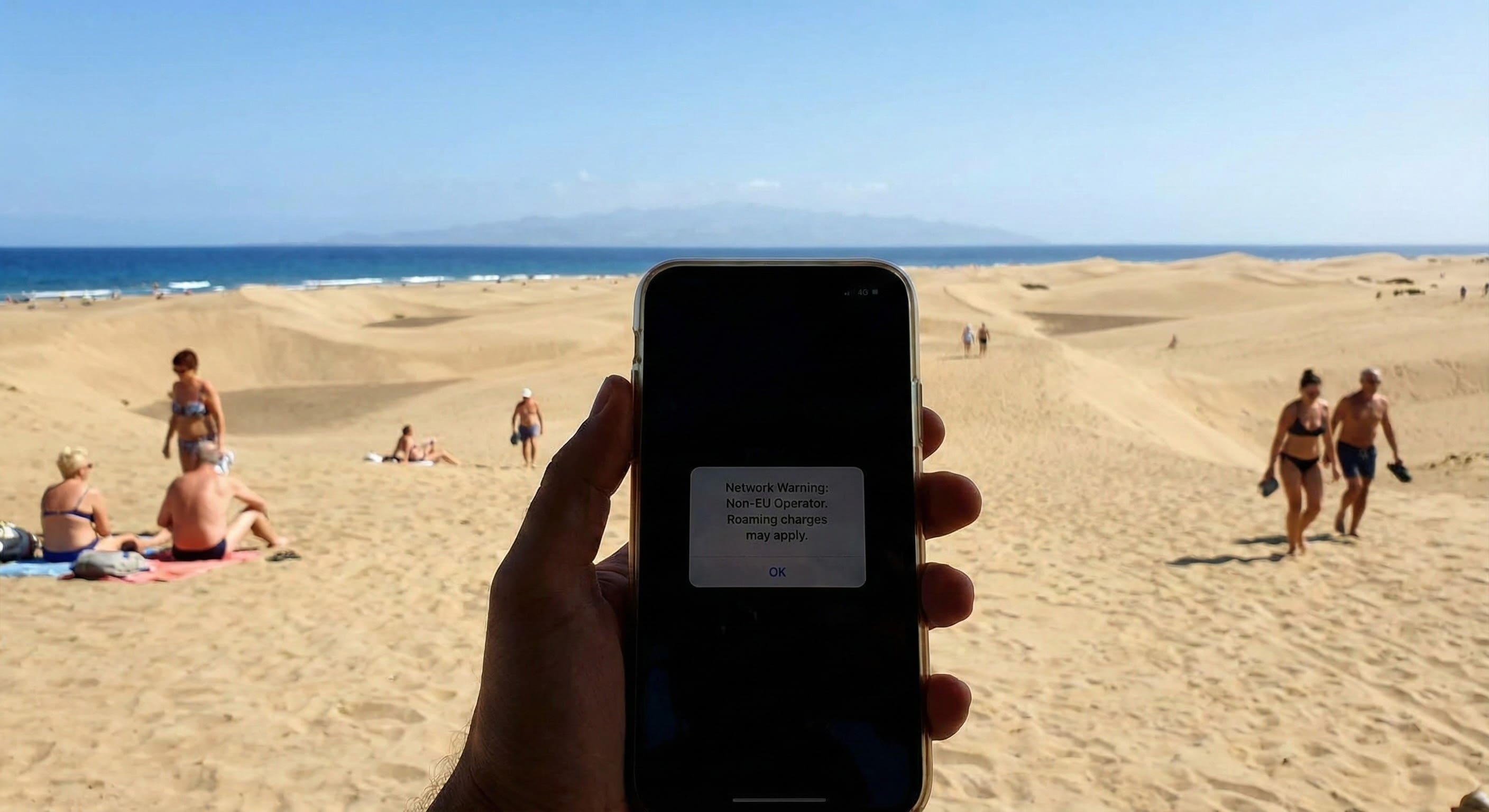 Er du trygg på "Roam Like at Home" på Gran Canaria? På sørkysten kan mobilen koble seg til Marokko. Lær hvordan du unngår sjokkregningen med Cellesim eSIM.